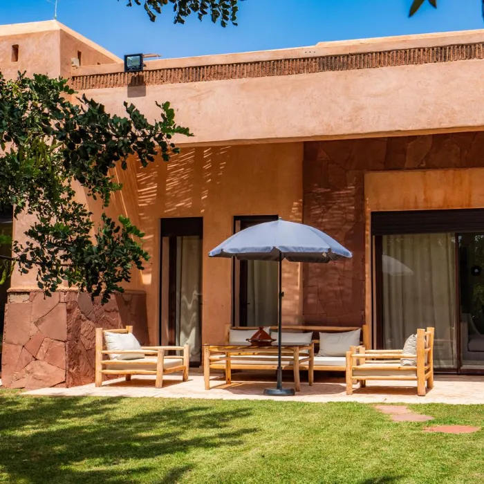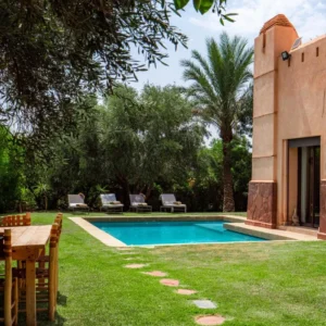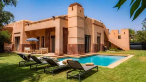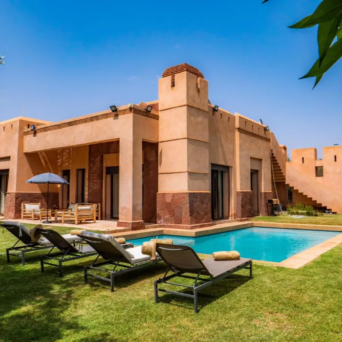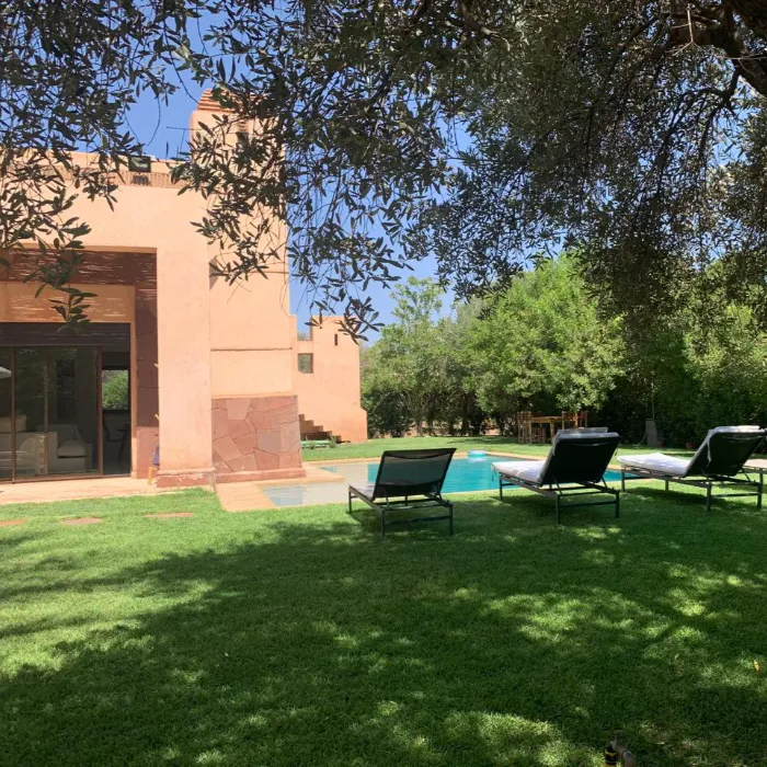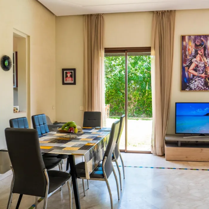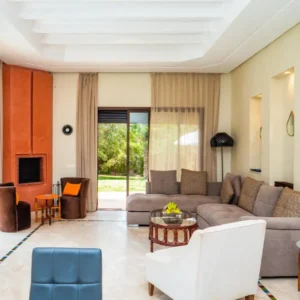 Nichée sur la prisée Route de Fès, cette magnifique villa séduit par son raffinement, sa lumière naturelle et son cadre paisible.