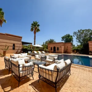 Au rez-de-chaussée, vous découvrirez trois belles suites, chacune avec sa salle de bain privée et son dressing. À l'étage, la suite principale s'ouvre sur une grande terrasse avec une vue magnifique sur la piscine et les jardins.